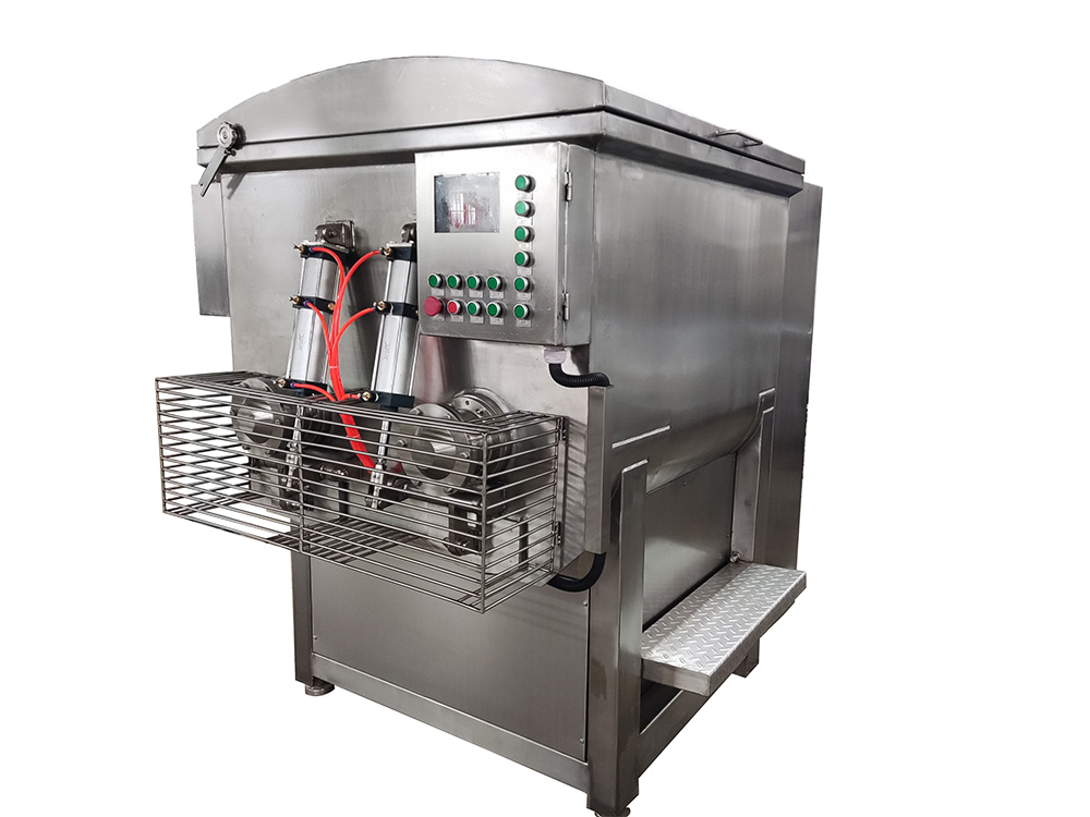 →雙軸雙速拌餡機  →型號 150/350/600/1200升  →功能  適合各種餃子、包子等肉類及蔬菜類餡料的攪拌  →特色  1、采用平行雙軸結(jié)構(gòu),螺旋板式槳葉,物料在料斗中翻動的同時作圓周運動,同時完成軸向回流,使各種物料攪拌的更加均勻?! ?、采用雙速雙動力,根據(jù)所拌餡的種類及工藝選擇不同的轉(zhuǎn)速和不同的運轉(zhuǎn)方式進行攪拌。  3、上蓋后端設(shè)有行程開關(guān),根據(jù)上蓋的開合,自動切斷或接通電源,操作方便,安全可靠。  4、整機采用不銹鋼制造,易于清洗,美觀大方。符合國家衛(wèi)生標(biāo)準(zhǔn)?! ?、可根據(jù)客戶的需求定制自動進水,自動起蓋,自動排料等功能?!  饕夹g(shù)參數(shù)產(chǎn)品型號面斗容積(L)額定功率(kw)攪拌轉(zhuǎn)速(rpm)額定電壓(v)外形尺寸(長×寬×高)SZJ   150升1501.5/2.442/84380920×665×990SZJ   350升3502.2/3.342/843801180×880×1390SZJ   600升6003.0/4.542/843801430×1080×1590SZJ  1200升12005.0/7.542/843801600×1530×2750